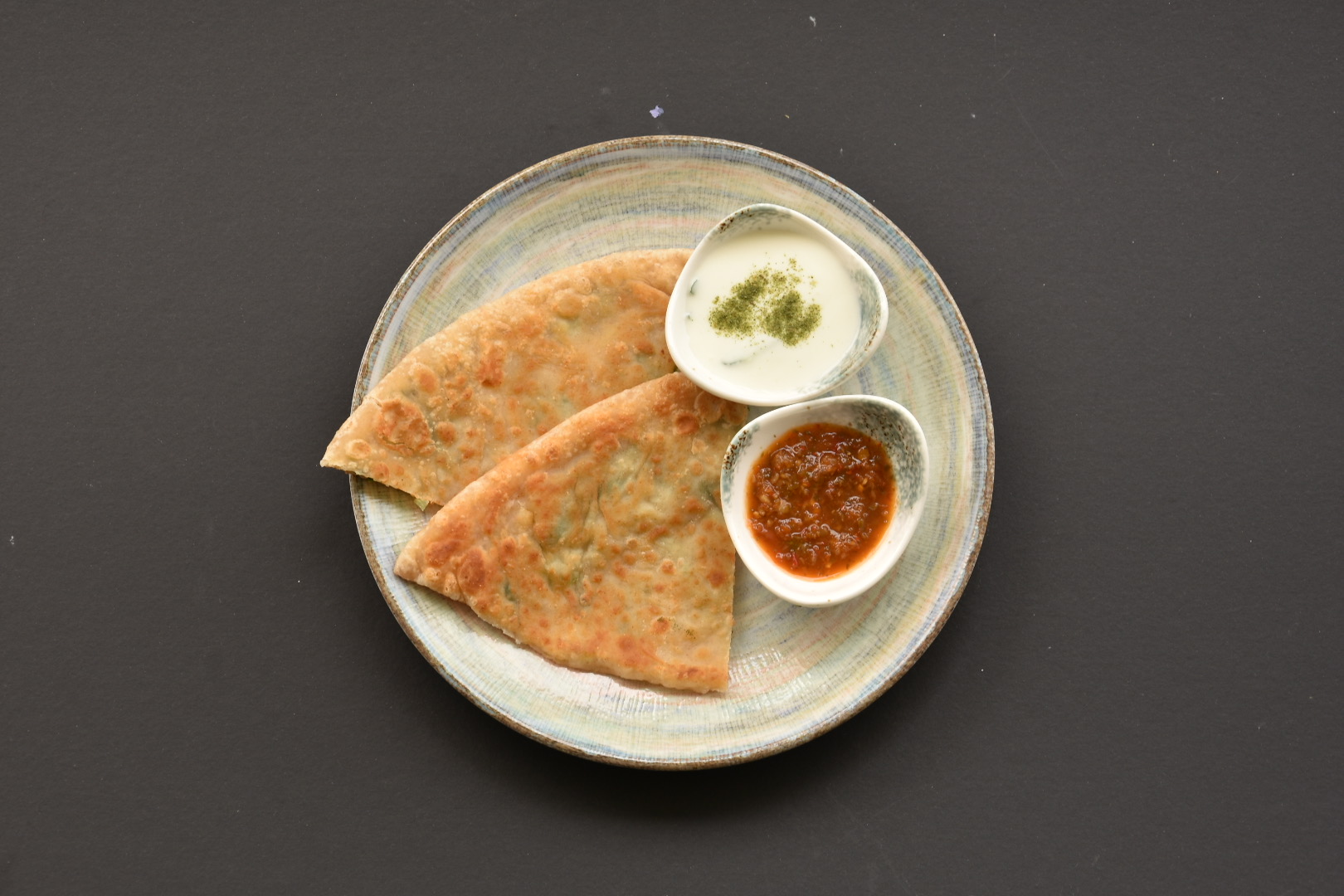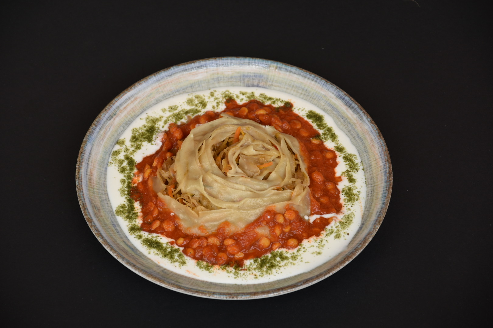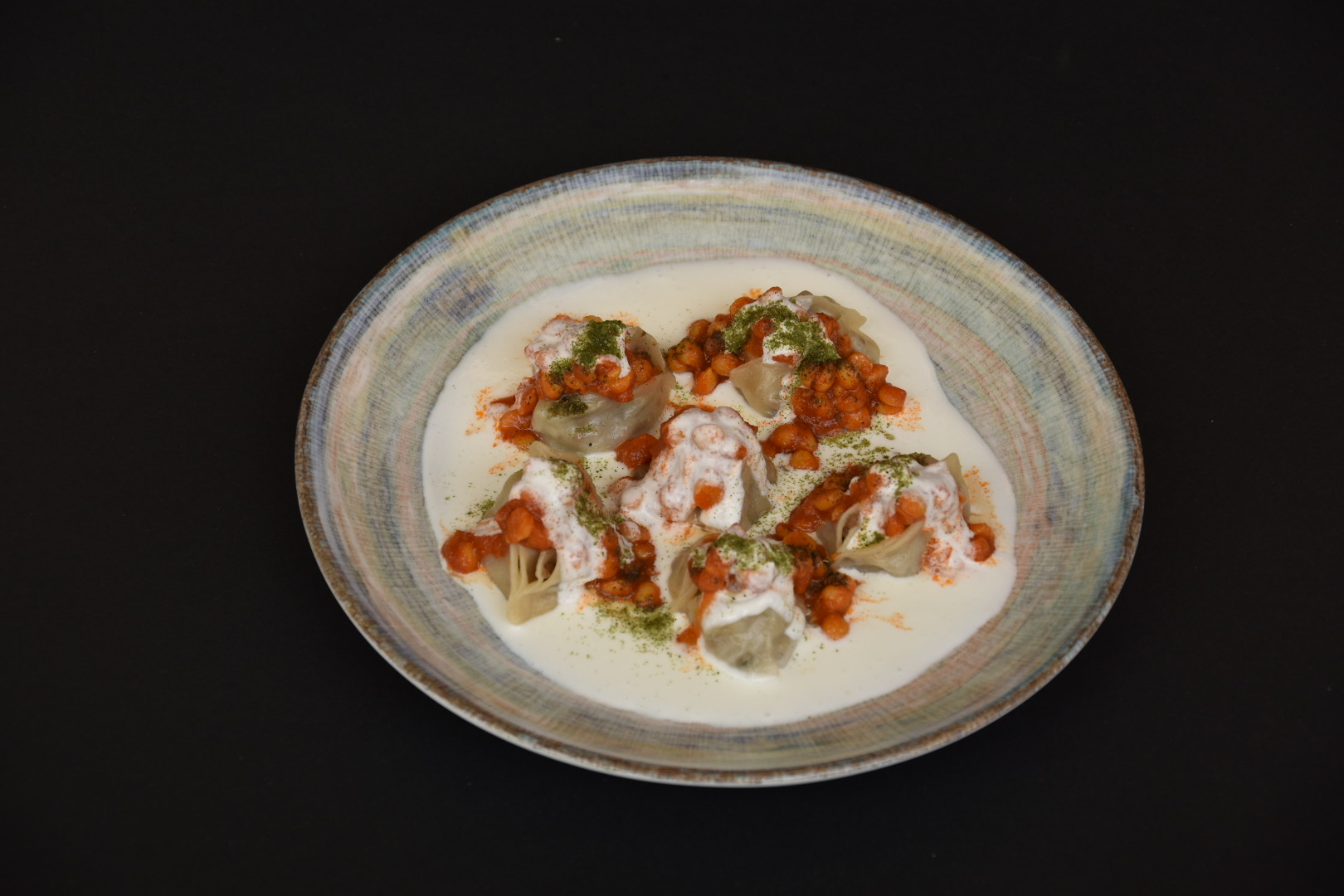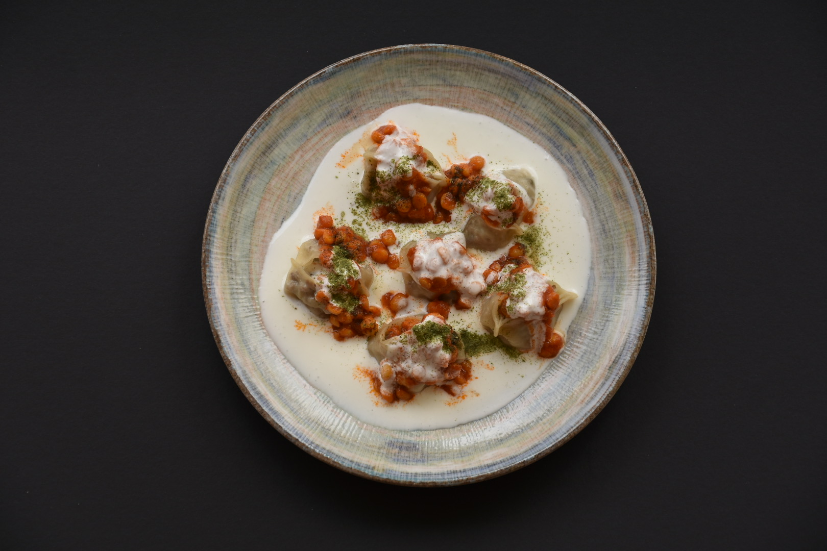 Gefüllte Teigtaschen mit Lauch, serviert mit